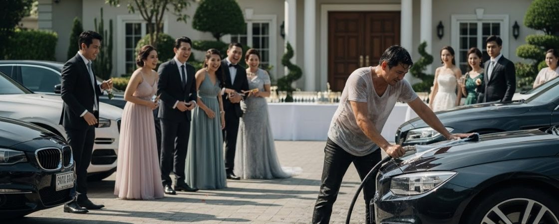 Under the scorching sun, as guests in gowns and suits arrived, Kael was soaking wet and rubbing the tires of his Mercedes Benz.